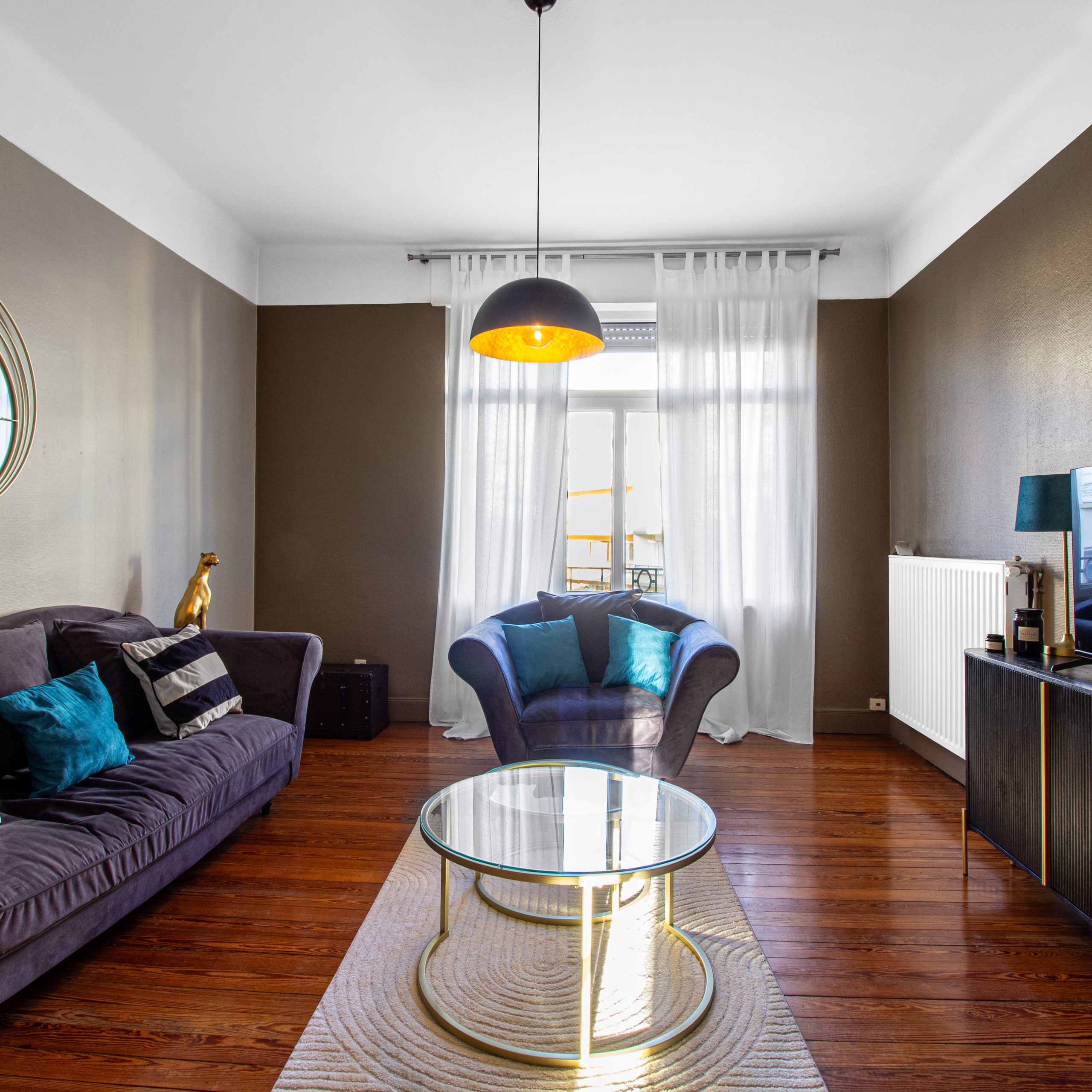 Un salon cosy, parfait pour se détendre après une journée de visite ou de travail.