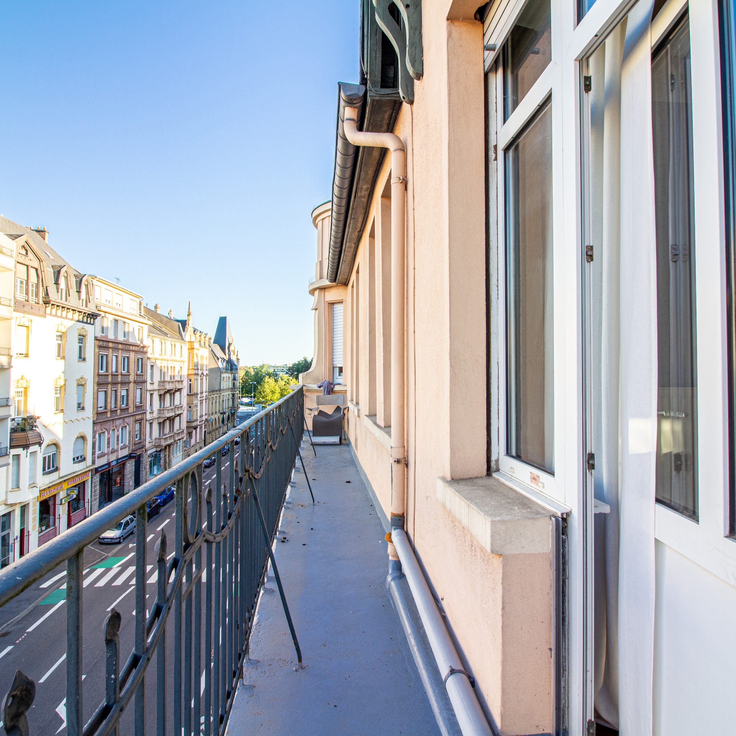 Un balcon agréable, équipé d’une petite table et de deux chaises, idéal pour prendre le café du matin ou un moment de détente au grand air.